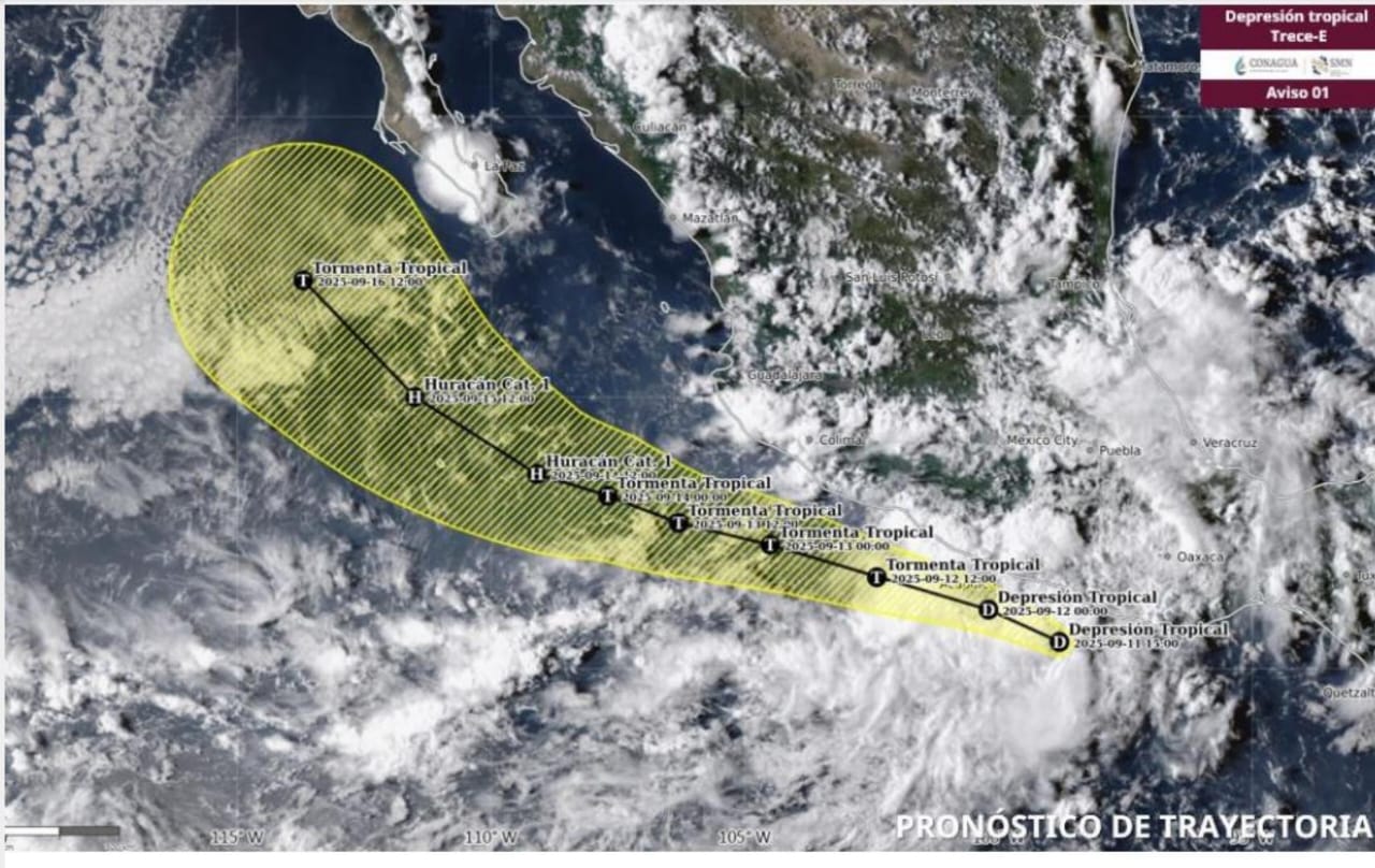 La Coordinación Estatal de Protección Civil y Gestión de Riesgos (CEPCyGR) advierte sobre evento de mar de fondo, con oleaje elevado y fuertes corrientes de resaca a lo largo de todo el litoral oaxaqueño, ante la formación de la depresión tropical Trece-E al sur de las costas de Oaxaca y Guerrero.