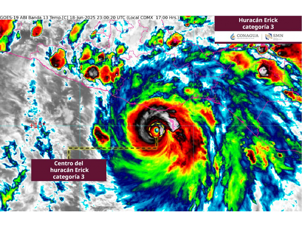 Alcanza huracán “Erick” categoría 3 y se prevé impacto la madrugada del jueves
