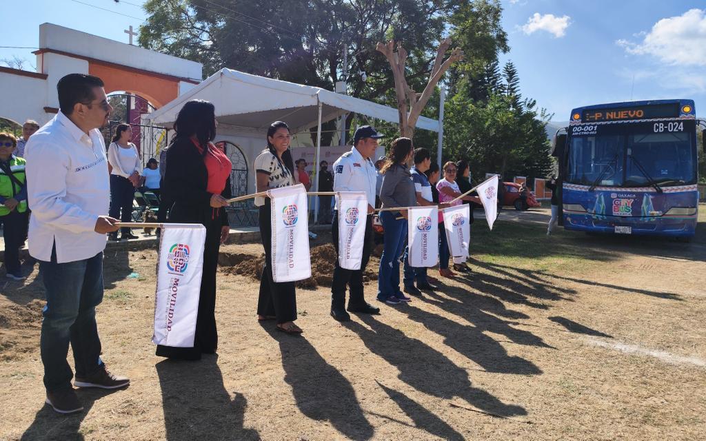 En el banderazo de salida, también estuvo presente el director general de la Policía Vial Estatal Toribio López Sánchez, así como autoridades municipales del Ayuntamiento de San Sebastián Tutla y personas usuarias del transporte de servicio público.
