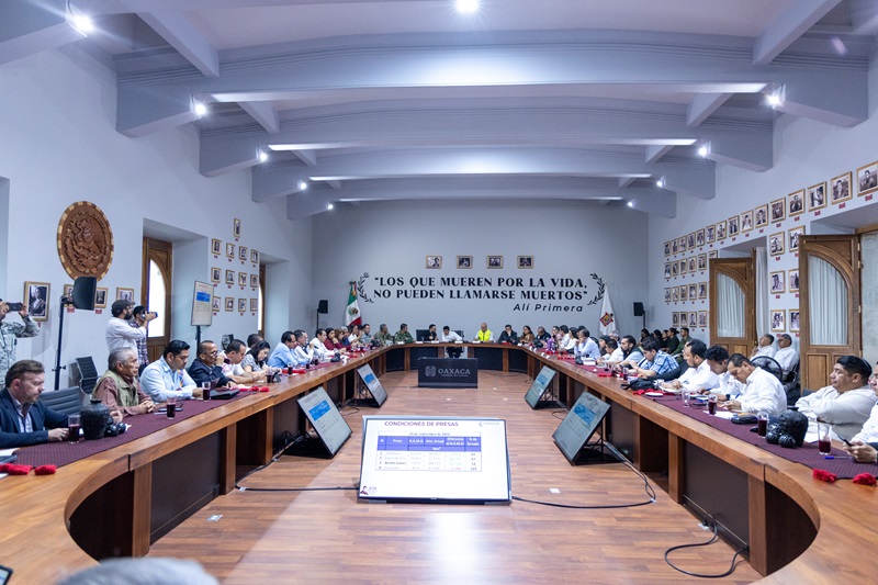 Oaxaca de Juárez, Oax. 23 de septiembre de 2024.- El Gobernador Salomón Jara Cruz, instaló este lunes la sesión permanente del Consejo Estatal de Protección Civil y Gestión de Riesgos de Oaxaca con el fin de responder de manera eficiente, responsable y oportuna al paso del huracán “John” por el territorio estatal.