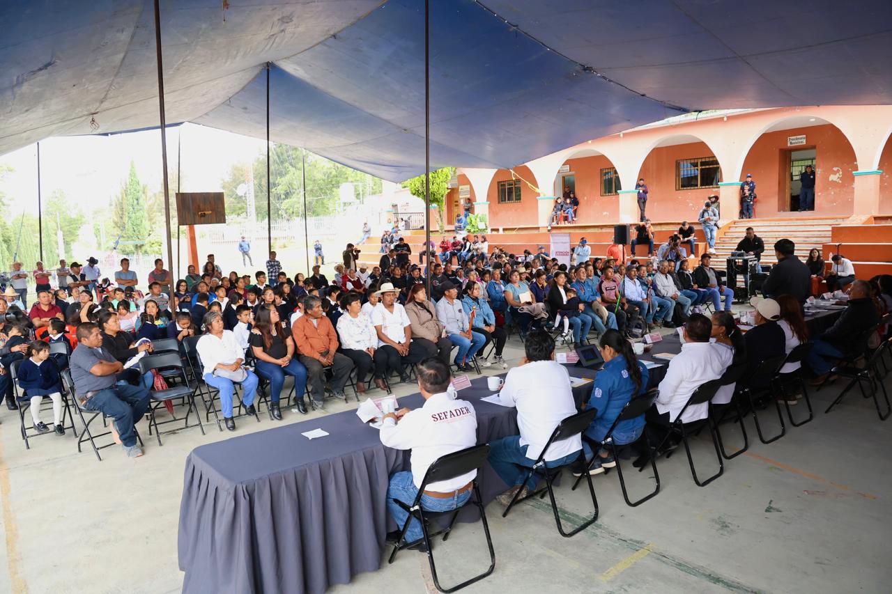 Al presentar el esquema Trabajo que Transforma tu Municipio en este lugar conocido por su pan de pulque, el Mandatario estatal indicó que, a través de la Secretaría de Infraestructuras y Comunicaciones (SIC), se construirá el techado de la cancha de la explanada municipal, con recursos por el orden de 3 millones 100 mil pesos.