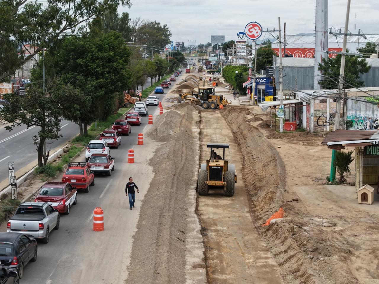 Se realizan trabajos que incluyen carpeta asfáltica, sistema de semáforos, drenaje pluvial y banquetas para personas usuarias; acciones que nunca antes se realizaron en beneficio de las y los oaxaqueños.