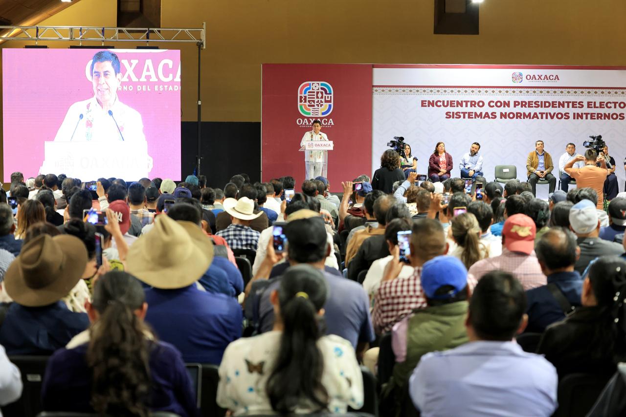 En un encuentro realizado en el Centro Cultural y de Convenciones de Oaxaca (CCCO), el Mandatario estatal conminó a las nuevas autoridades a mantener una actitud de servicio y no defraudar la confianza que sus comunidades pusieron en ellas y ellos.