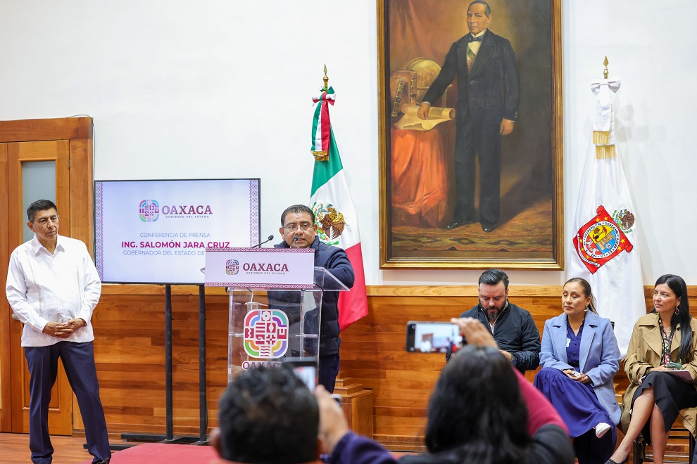 Oaxaca de Juárez, Oax. 19 de febrero de 2024. El Gobierno de Oaxaca anunció que este año liquidará los más de 12 mil millones de pesos que restan de la deuda heredada por la administración pasada con el Servicio de Administración Tributaria (SAT) y el Instituto de Seguridad y Servicios Sociales de los Trabajadores del Estado (ISSSTE).