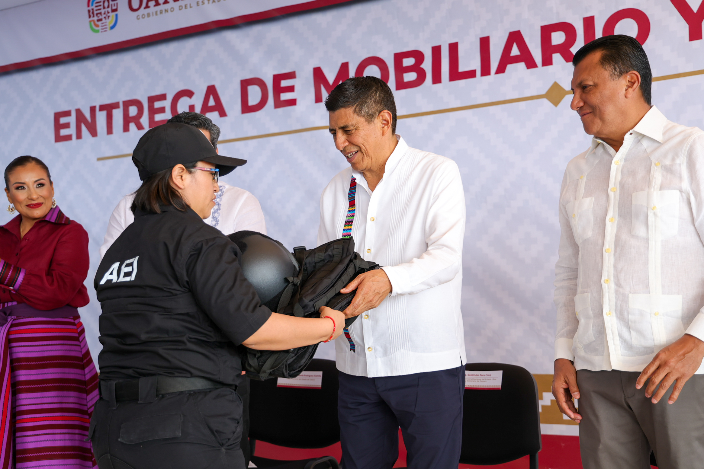 El Gobernador Salomón Jara Cruz expuso que con esta inversión se entrega equipamiento y material para hacer más efectivos los procesos de investigación criminalística, y se reitera el lugar que ocupa el estado de Oaxaca como una de las entidades más seguras del país.
