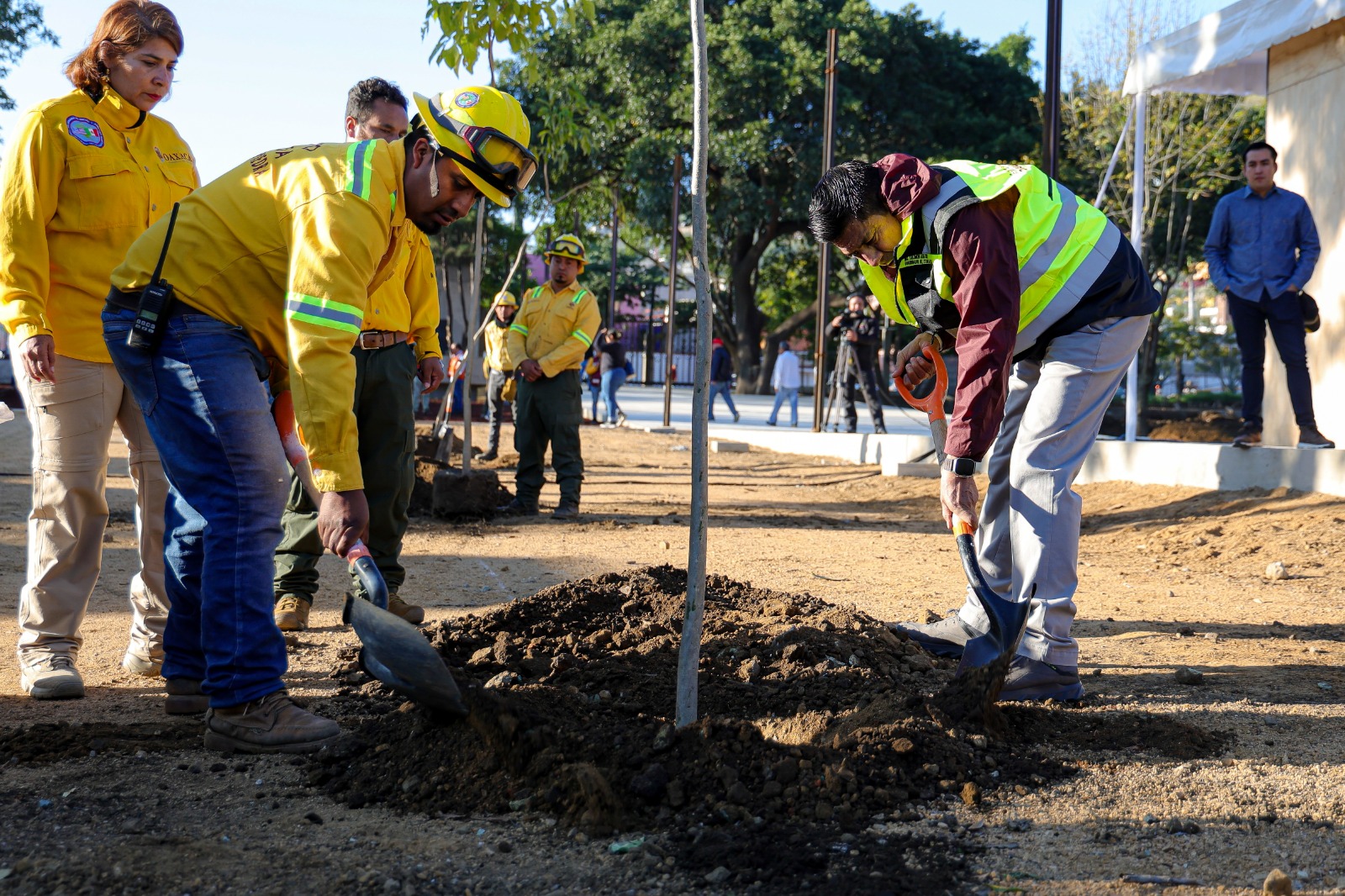 Oaxaca de Juárez, Oax. 26 octubre de 2024.- Con la siembra simbólica de un árbol, el Gobernador Salomón Jara Cruz, arrancó este sábado el Mega Tequio Parque Primavera Oaxaqueña con el cual se reforestará y embellecerá el nuevo espacio que se erige en terrenos de la ex fábrica de Triplay -Novopan, así como sus alrededores.