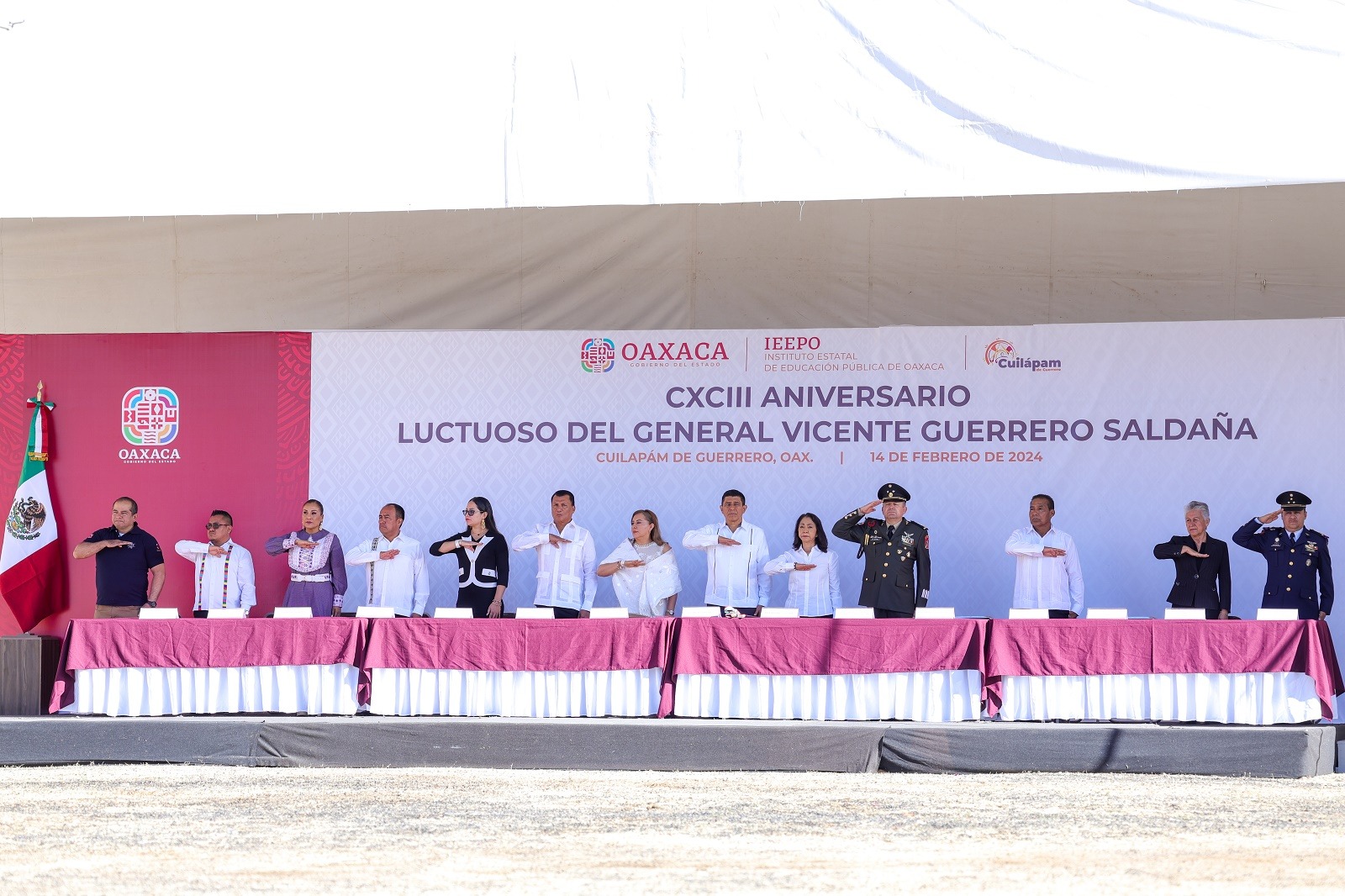 “No se puede entender la historia, ni la primera gran transformación de México sin la participación de Guerrero, su vida y obra nos demuestra el patriotismo y entrega por defender las causas justas; por eso siempre volveremos a Cuilápam un 14 de febrero, para decir juntos: ¡Que viva el general y presidente Vicente Guerrero, que viva el estado hermano de Guerrero, que viva Oaxaca, y que viva México!”, reiteró.
