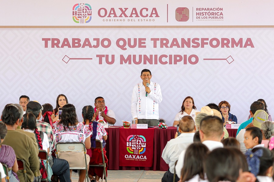 Santiago Apóstol, Oax. 28 de junio de 2024.- Como parte de la estrategia Trabajo que Transforma tu Municipio, el Gobernador de Oaxaca Salomón Jara Cruz visitó la localidad de Santiago Apóstol, perteneciente a los Valles Centrales y anunció diversas obras de beneficio colectivo como parte de la Reparación Histórica de los Pueblos de la entidad.