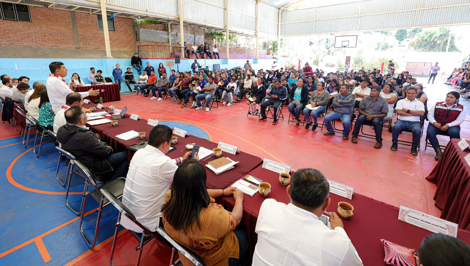 Reunidos en la cancha deportiva de Santa María Jaltianguis, y acompañado de la Presidenta Honoraria del Sistema Estatal para el Desarrollo Integral de la Familia (DIF) Oaxaca, Irma Bolaños Quijano, el Mandatario estatal señaló que se canalizan 5 millones 246 mil pesos a través de la estrategia Trabajo que Transforma tu Municipio para atender los requerimientos sociales de esta localidad.