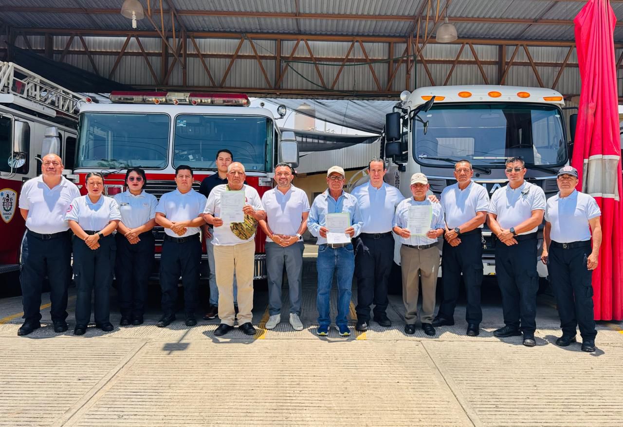 Oaxaca de Juárez, Oax., 15 de agosto de 2025.- En un acto de justicia social y reconocimiento a toda una vida de servicio a la comunidad, la Oficina de Pensiones del Estado de Oaxaca entregó constancias del Instituto Mexicano del Seguro Social (IMSS), a tres pensionados del Heroico Cuerpo de Bomberos.