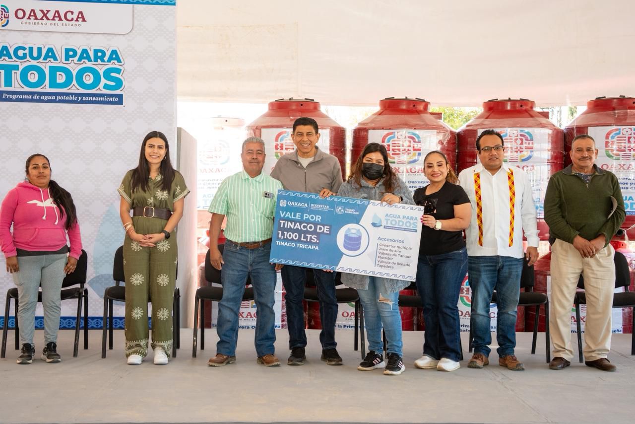 Como parte del programa Agua para Todas y Todos, estrategia integral para enfrentar la temporada de estiaje y hacer efectivo el derecho humano al agua, se entregaron tinacos a 450 familias de Trinidad de Viguera, 450 de Pueblo Nuevo y 400 de Santa Rosa Panzacola.