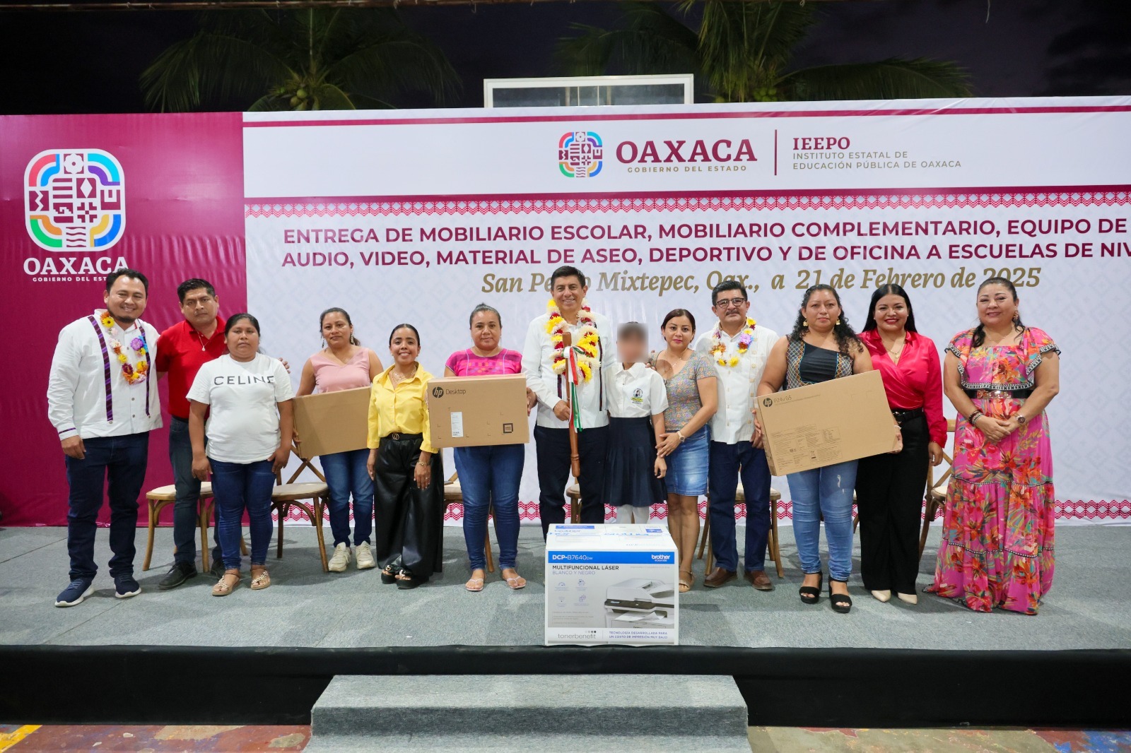 San Pedro Mixtepec, Oax. 22 de febrero de 2025.- Para fortalecer los servicios educativos que se brindan en la región Costa, el Gobernador de Oaxaca, Salomón Jara Cruz entregó de manera directa y sin intermediarios equipamiento a 137 escuelas de nivel básico, pertenecientes a seis municipios, con una inversión de 9 millones 149 mil 358 pesos del Fondo de Aportaciones Múltiples (FAM).