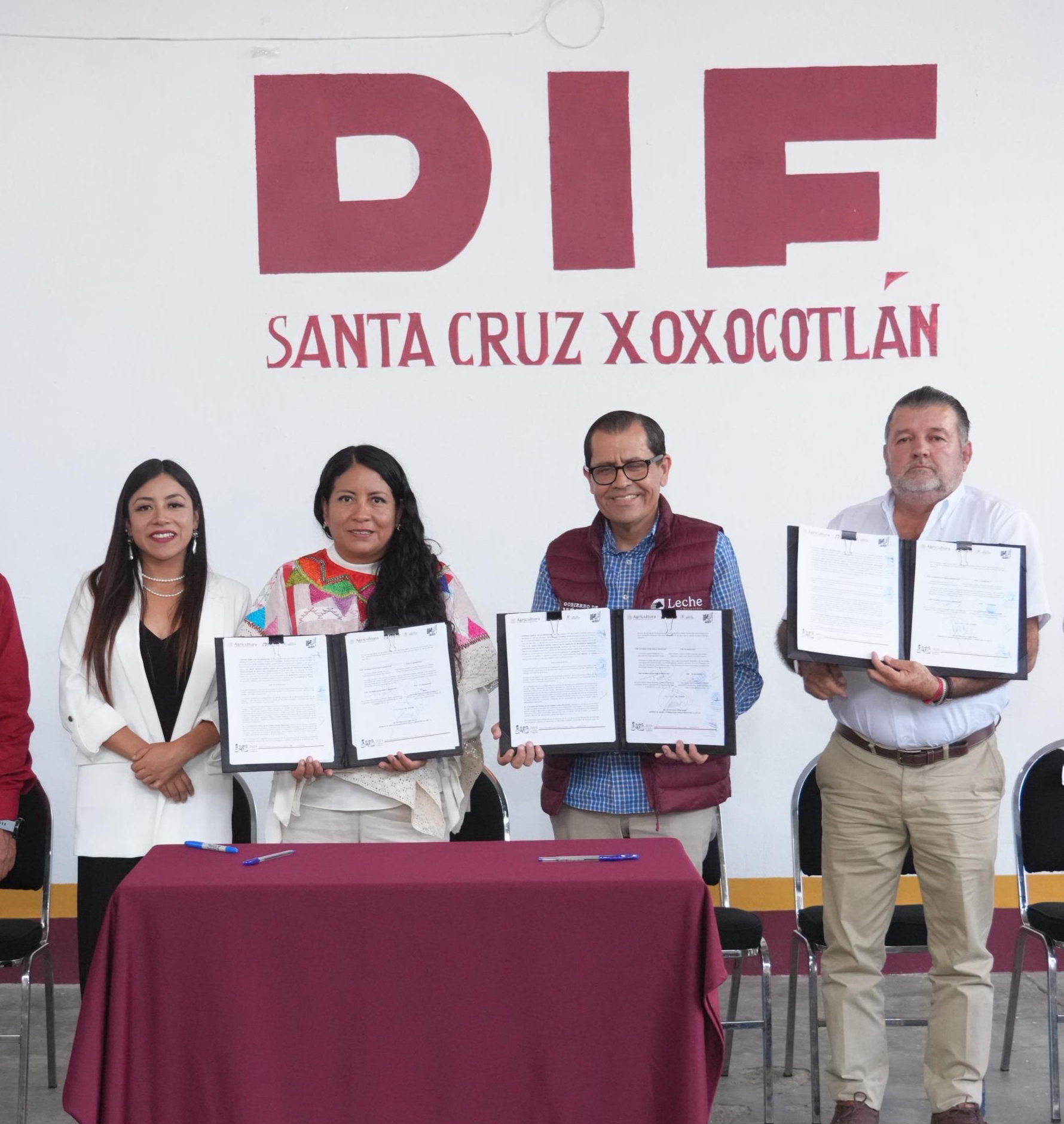 Santa Cruz Xoxocotlán, Oax., 19 de agosto de 2025. – Priorizando el desarrollo y una alimentación saludable para las familias de Santa Cruz Xoxocotlán, la presidenta municipal Nancy Benítez Zárate, junto al gerente nacional de Abasto Social de Leche para el Bienestar, Víctor Hugo Pérez Rojas, firmaron un convenio de colaboración que permitirá asegurar que este programa llegue a cada rincón del municipio.
