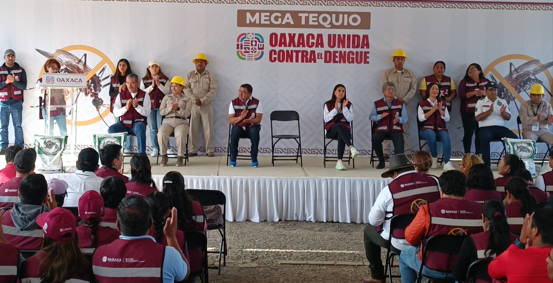 Oaxaca de Juárez, Oax. 6 de julio de 2024.- En una acción colectiva de limpieza, concientización y eliminación de posibles criaderos del zancudo Aedes aegypti, las cuadrillas del personal de vectores de Servicios de Salud de Oaxaca (SSO), personas voluntarias, personal del Gobierno de Oaxaca, autoridades municipales y población se sumaron al Mega Tequio Bienestar Oaxaca Unida Contra el Dengue.