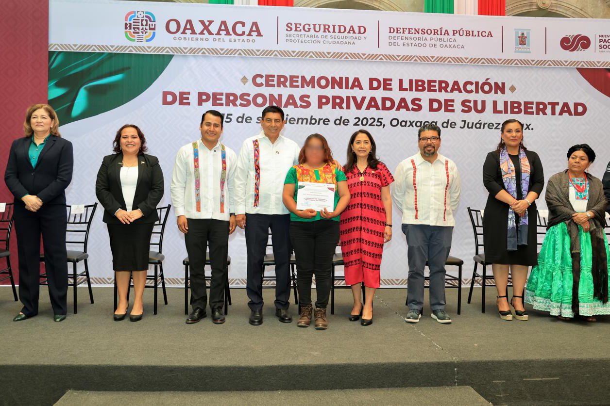 Oaxaca de Juárez, Oax. 15 de septiembre de 2025.- En un acto de humanismo y justicia, el gobierno que encabeza Salomón Jara Cruz entregó, de manera simbólica, seis constancias de liberación a personas privadas de la libertad indígenas y de escasos recursos; con lo que suman 819 en lo que va de su administración.