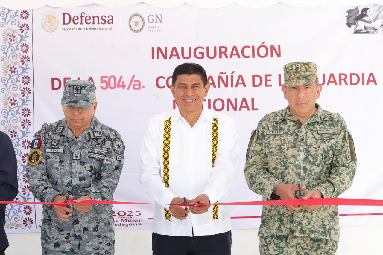 Salina Cruz, Oax. 11 de abril de 2025.- Para garantizar la paz y salvaguardar la integridad de las y los oaxaqueños, el Gobernador Salomón Jara Cruz inauguró las instalaciones de la 504/a Compañía de la Guardia Nacional (GN), en el municipio de Salina Cruz, en la región del Istmo de Tehuantepec.