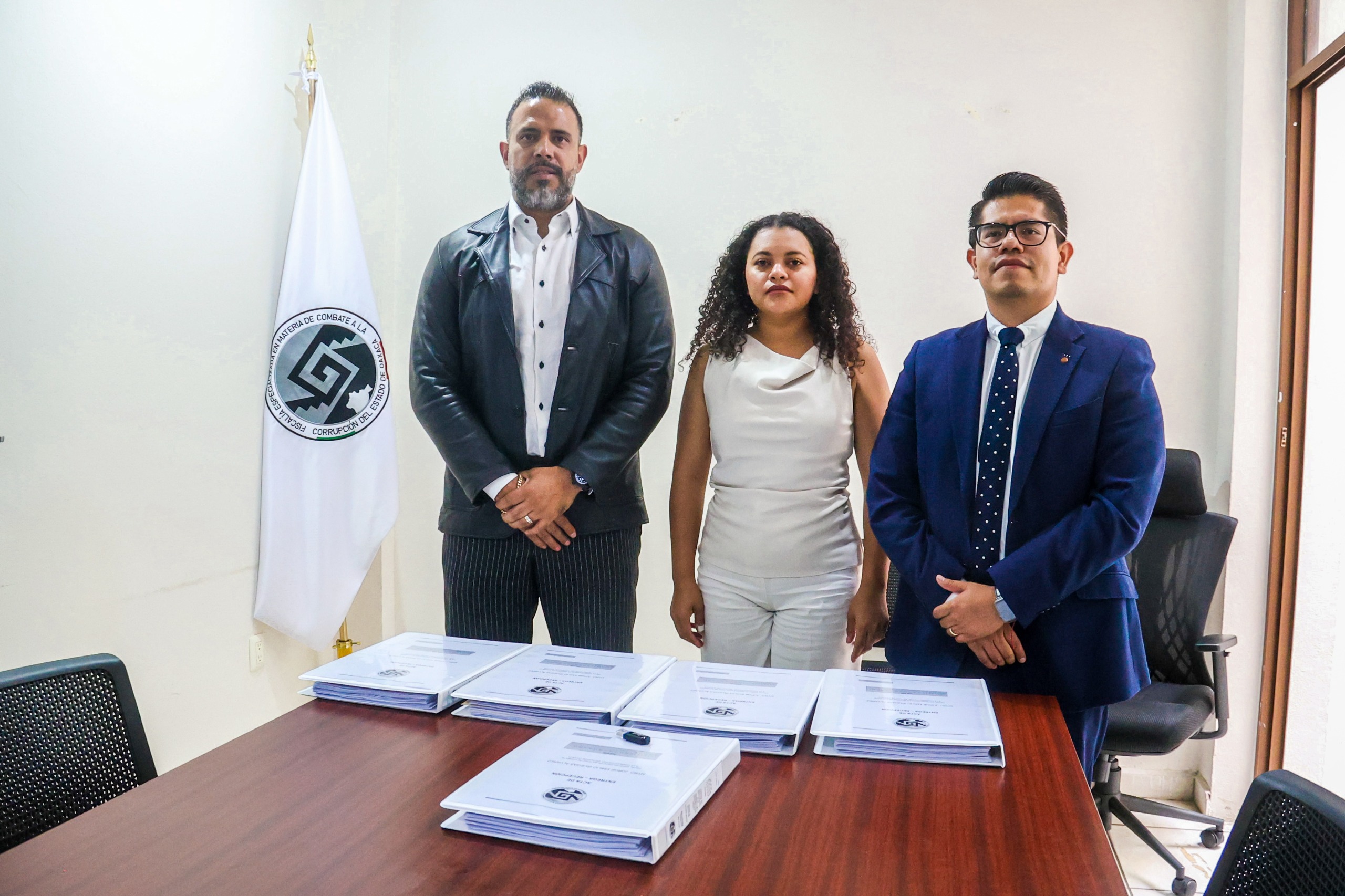 Oaxaca de Juárez, Oax.- El fiscal saliente en materia de combate a la corrupción, Jorge Emilio Iruegas Álvarez y la fiscal entrante Karina Reyes Ávila, realizaron el proceso de entrega-recepción, a fin de brindar certeza jurídica y física del patrimonio de la Fiscalía Especializada en Materia de Combate a la Corrupción del Estado de Oaxaca.