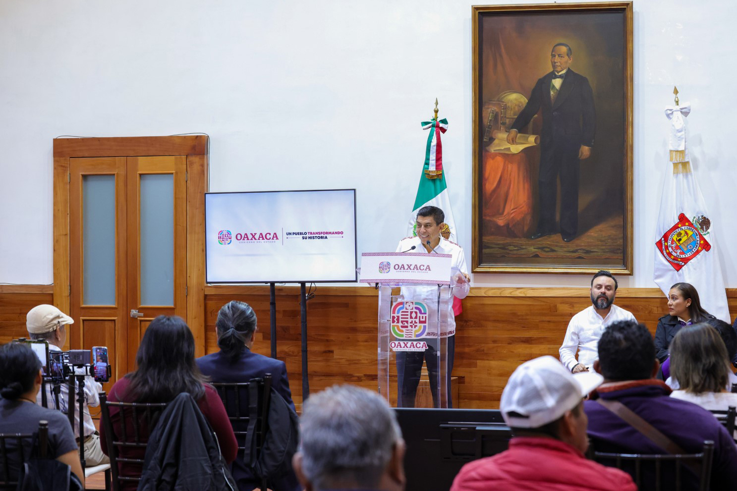 Durante este encuentro con los medios, el Gobernador Salomón Jara Cruz negó la existencia de una suspensión ordenada por una autoridad federal contra el decreto de expropiación del predio de la antigua fábrica de triplay.