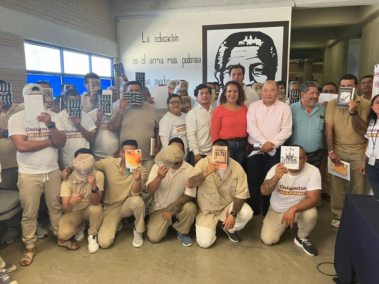 Derivadas del Programa Fomento a la Lectura “Un pueblo leyendo para transformar su historia” que impulsa el gobierno de la Primavera Oaxaqueña, autoridades penitenciarias y directivos de la Seculta compartieron textos que leyeron en voz alta y realizaron actividades lúdicas y musicales, así como la entrega de libros para quienes se encuentran privados de la libertad.