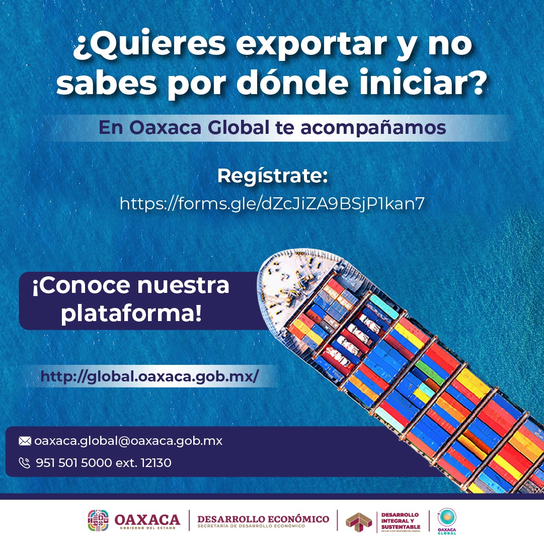 El Gobierno del Estado a través de la Secretaría de Desarrollo Económico (Sedeco) invita a las Micro, Pequeñas y Medianas Empresas (Mipymes) a participar en la convocatoria Oaxaca Global, la cual tiene el objetivo de fomentar la participación comercial de las empresas oaxaqueñas a nivel internacional, promoviendo así su desarrollo, competitividad y crecimiento.