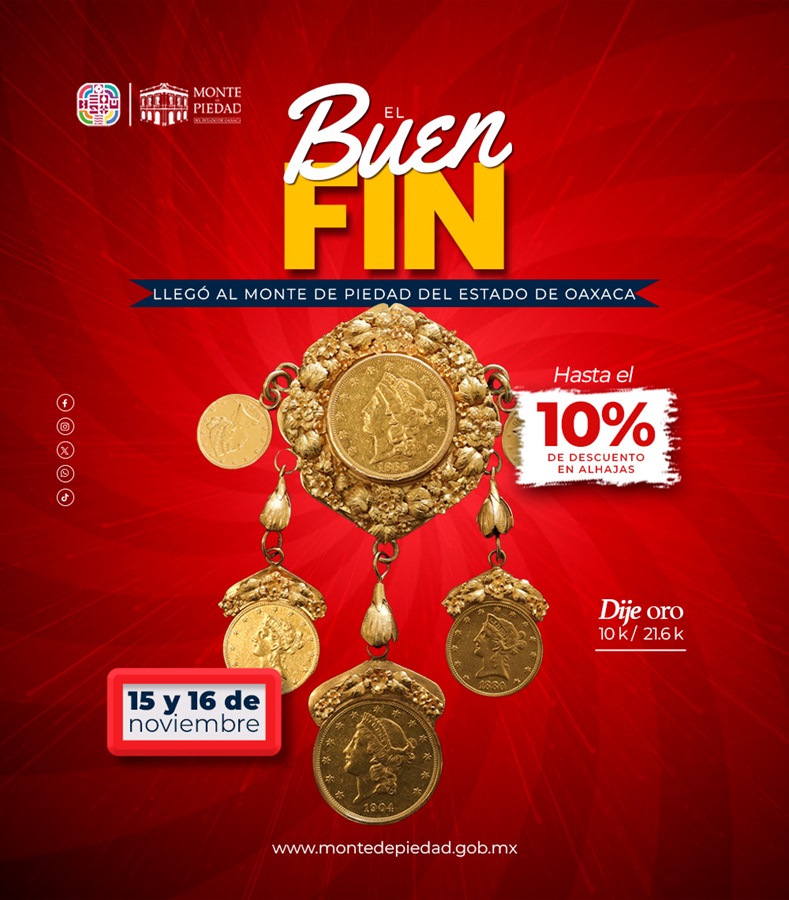 Así lo dio a conocer el director general, Omar Julián Julián, quien precisó que la institución prendaria se une a las actividades del “Buen Fin”, para que las familias oaxaqueñas aprovechen los precios especiales que se tendrán estos días.