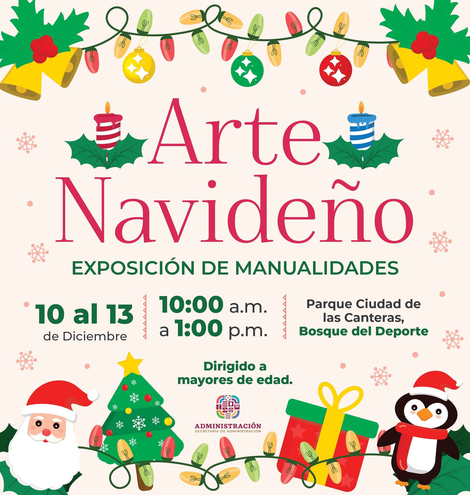 A través de la Coordinación de Espacios Públicos Recreativos se realizará la Exposición Arte Navideño en el Bosque del Deporte del Parque Ciudad de las Canteras del 10 al 13 de diciembre, en un horario de 10:00 a 13:00 horas, dirigida a personas mayores de 18 años.