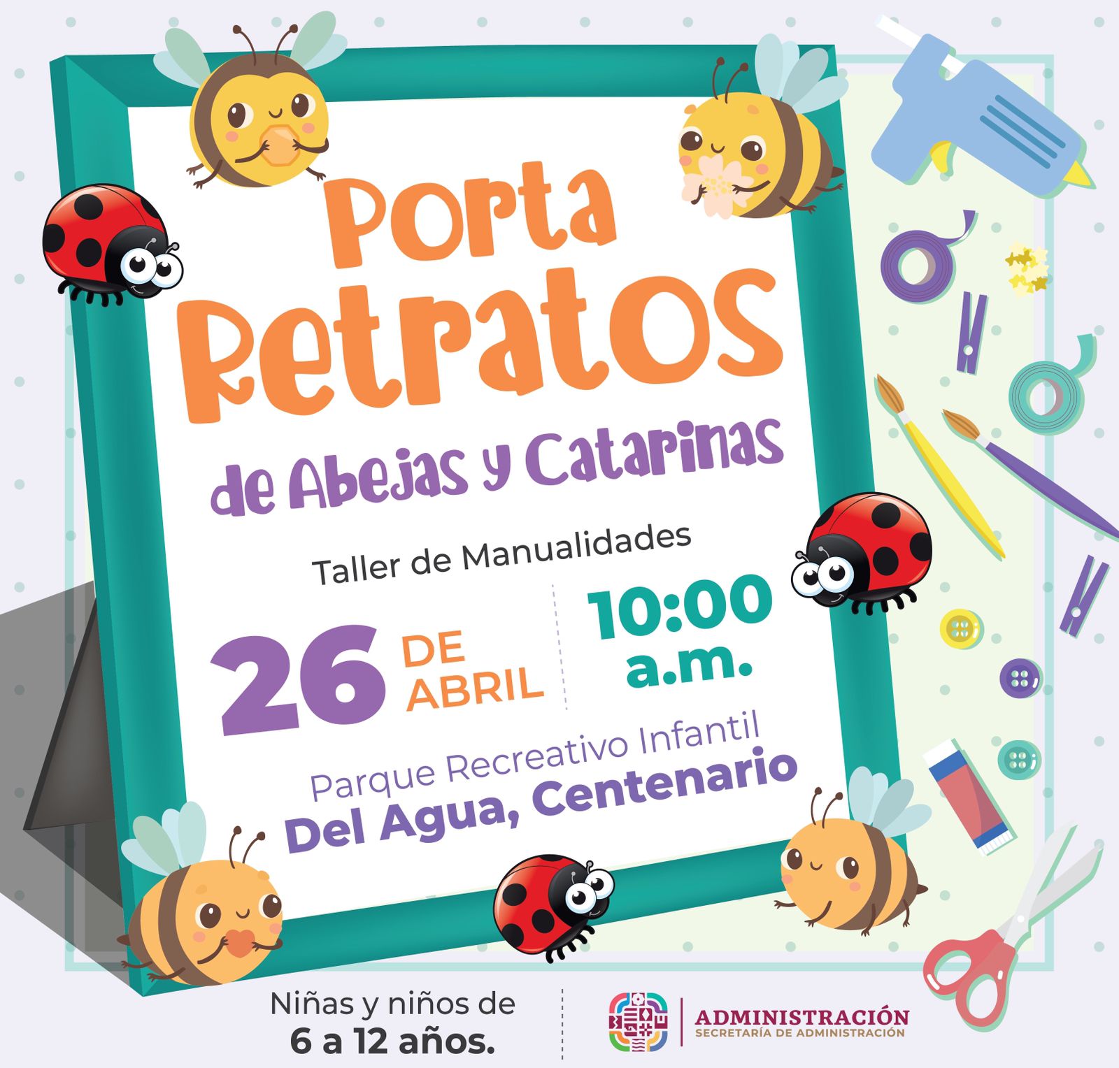 Por lo que se invita a la población infantil entre 6 y 10 años, a participar en el taller de manualidades bajo la temática de abejas y catarinas, que enmarca la temporada primaveral, en un horario de 10:00 a 12:30 horas.