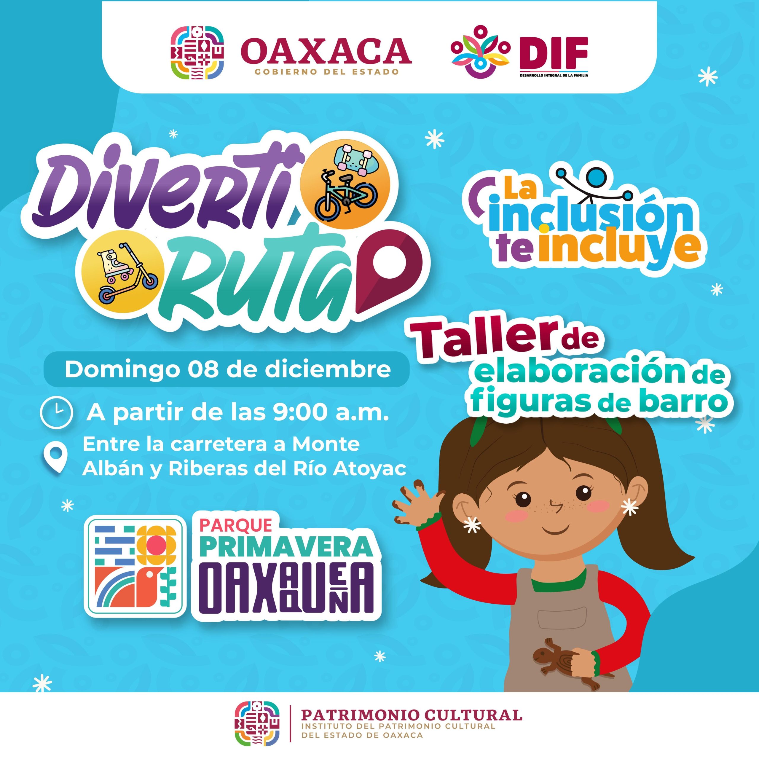 Oaxaca de Juárez, Oax. 6 de diciembre de 2024.- En el marco del Día Internacional de las Personas con Discapacidad, conmemorado cada 3 de diciembre, la vigésima séptima edición de la Diverti Ruta ofrecerá diversión y aprendizaje a la niñez y adolescencia con actividades recreativas, culturales y deportivas inclusivas este domingo 8 del presente mes en las instalaciones del Parque Primavera Oaxaqueña Cho Ndobá.