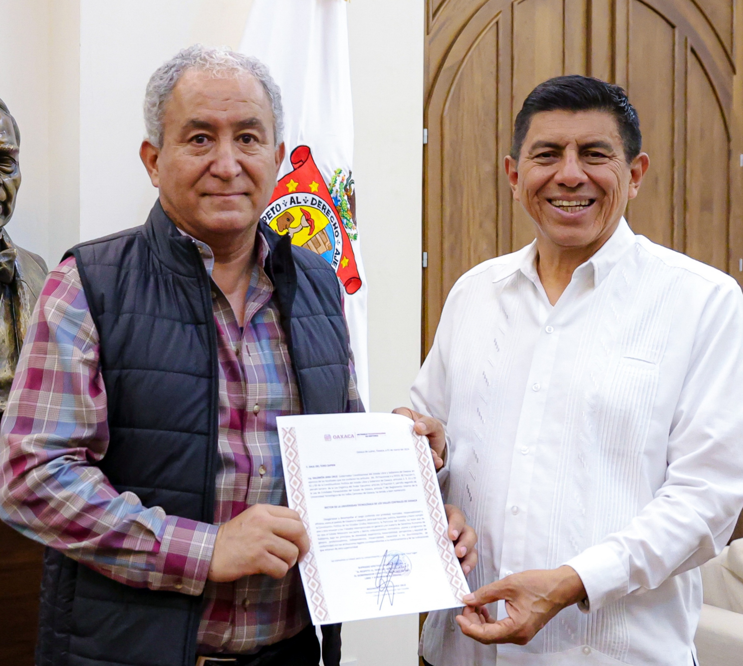 San Pablo Huixtepec, Oax. 15 de marzo de 2024.- Con fundamento en las atribuciones que le confiere la Constitución Política del Estado Libre y Soberano de Oaxaca, el Gobernador Salomón Jara Cruz designó a Saúl del Toro Zapién como nuevo rector de la Universidad Tecnológica de los Valles Centrales de Oaxaca (UTVCO).