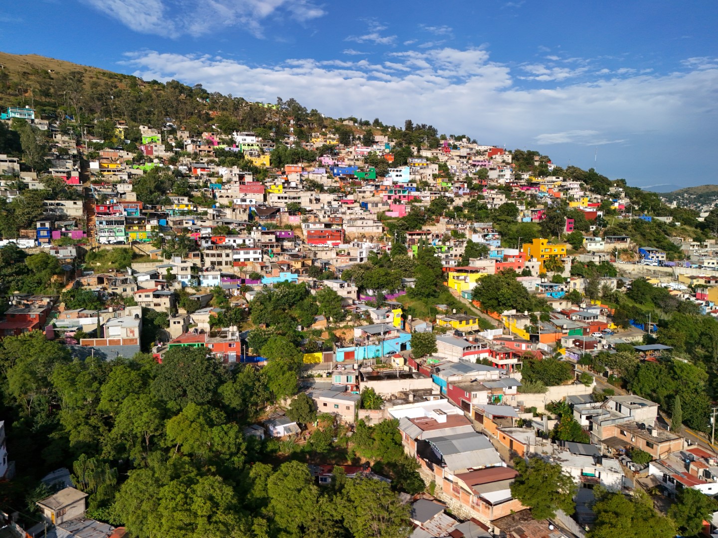 Oaxaca de Juárez, Oax., 26 de septiembre de 2025.- Oaxaca se pintó de identidad y esperanza con el Mega Tequio Fachadas Primavera, realizado por el Gobierno del Estado en la agencia San Juan Chapultepec, en el que se embellecieron más de 400 casas.