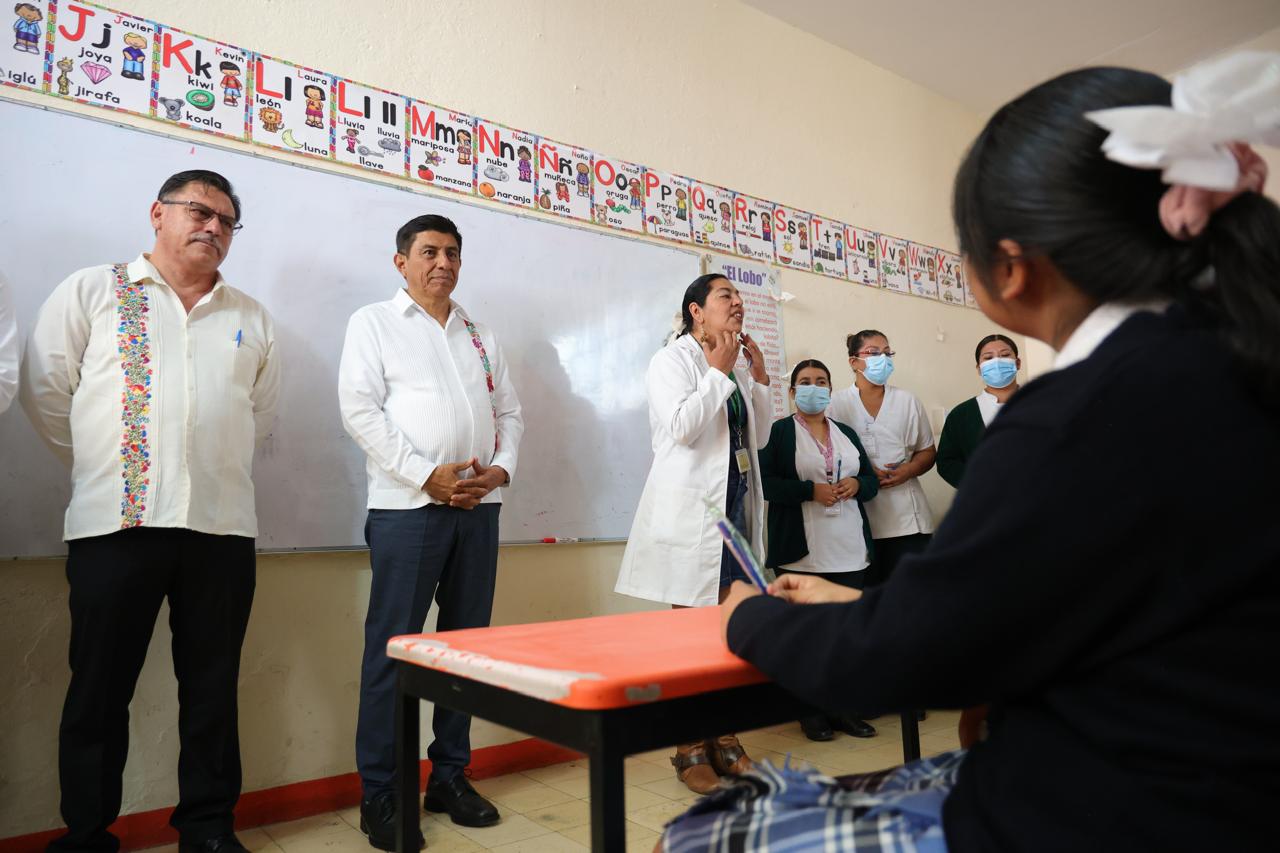 “Esta estrategia consiste en iniciar un censo en todas las escuelas de la entidad y el país, para conocer qué problemas bucales, visuales y auditivos presenta la niñez”, informó durante la actividad realizada en la Primaria Matutina “Enrique Pestalozzi”, de Oaxaca de Juárez.