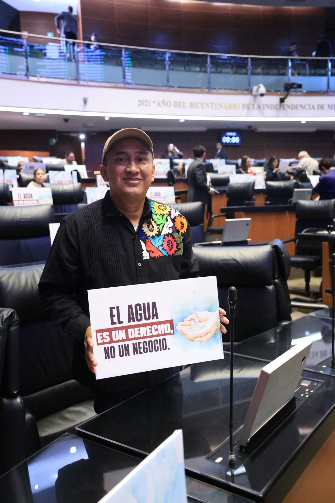 “Hoy, en la Cuarta Transformación, devolvemos el agua a la Nación. Es un acto de justicia para el pueblo de México. Se acaba la visión que permitió el acaparamiento, la sobreexplotación y un mercado ilegal que enriqueció a poderosos, mientras nuestros pueblos sufrían escasez”, afirmó el legislador.