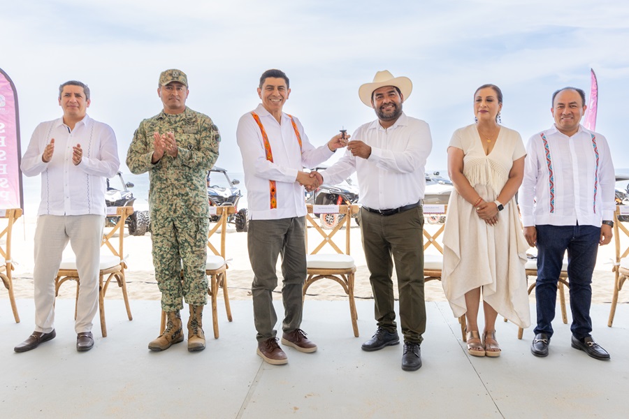 Las localidades beneficiadas con ocho cuatrimotos, siete acuamotos y siete vehículos todo terreno, respectivamente, son: San Pedro Mixtepec, San Pedro Pochutla, Villa de Tututepec de Melchor Ocampo, Santa María Colotepec, Santa María Huatulco, Santiago Pinotepa Nacional y Santa María Tonameca.