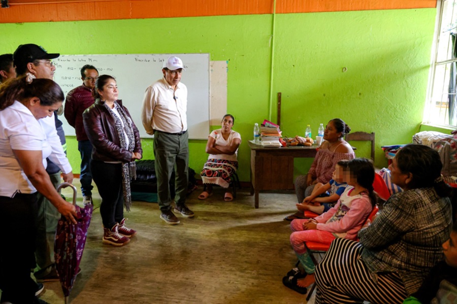Hasta la escuela primaria rural “Ignacio Manuel Altamirano” de la agencia Cruz del Itacuán del municipio de Santiago Pinotepa Nacional convertida en albergue, arribó el Mandatario estatal para conocer de viva voz su sentir de quienes han pasado aquí tres días, después de que las lluvias afectaran sus viviendas.