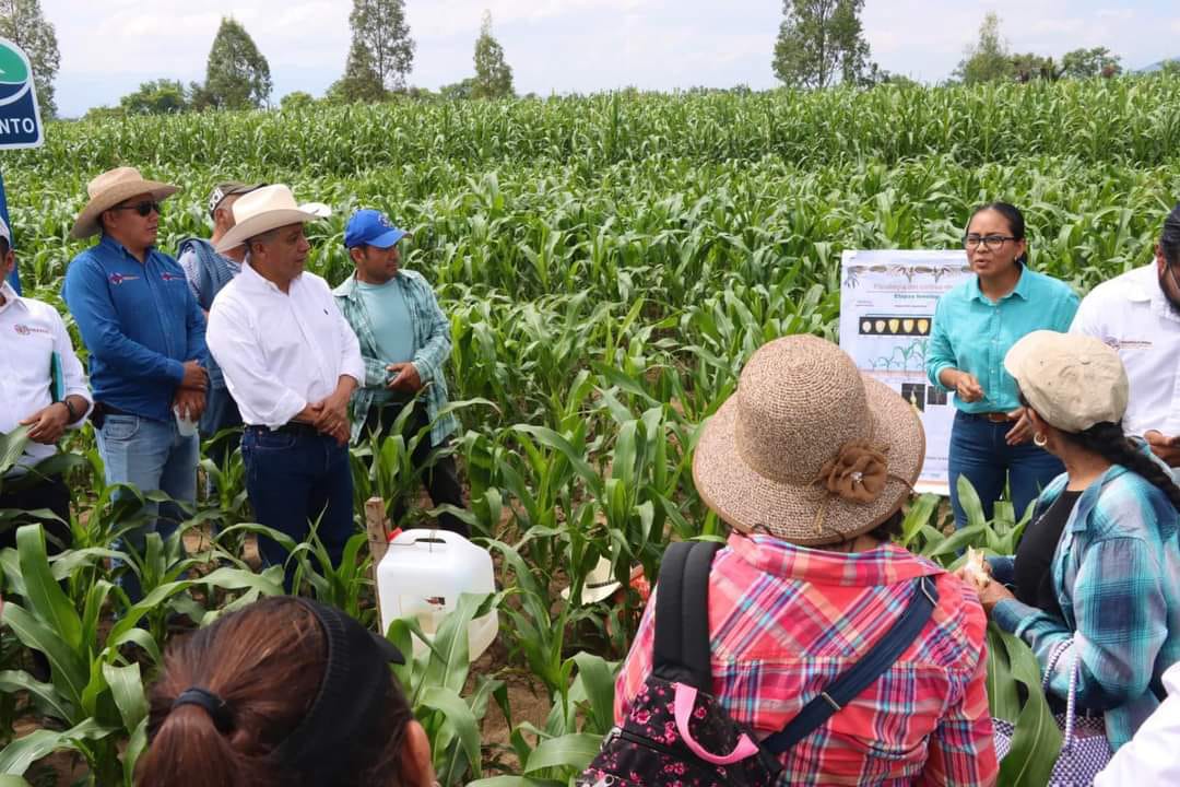 Zimatlán de Álvarez, Oax. 20 de agosto de 2024.- Con la participación de personas productoras y técnicas de Valles Centrales, la Secretaría de Fomento Agroalimentario y Desarrollo Rural (Sefader) supervisó las parcelas establecidas en San Nicolás Quialana, como vitrinas sembradas con diferentes variedades de maíces y frijoles tratados con insumos de los programas Abasto Seguro de Maíz y Autosuficiencia Alimentaria.