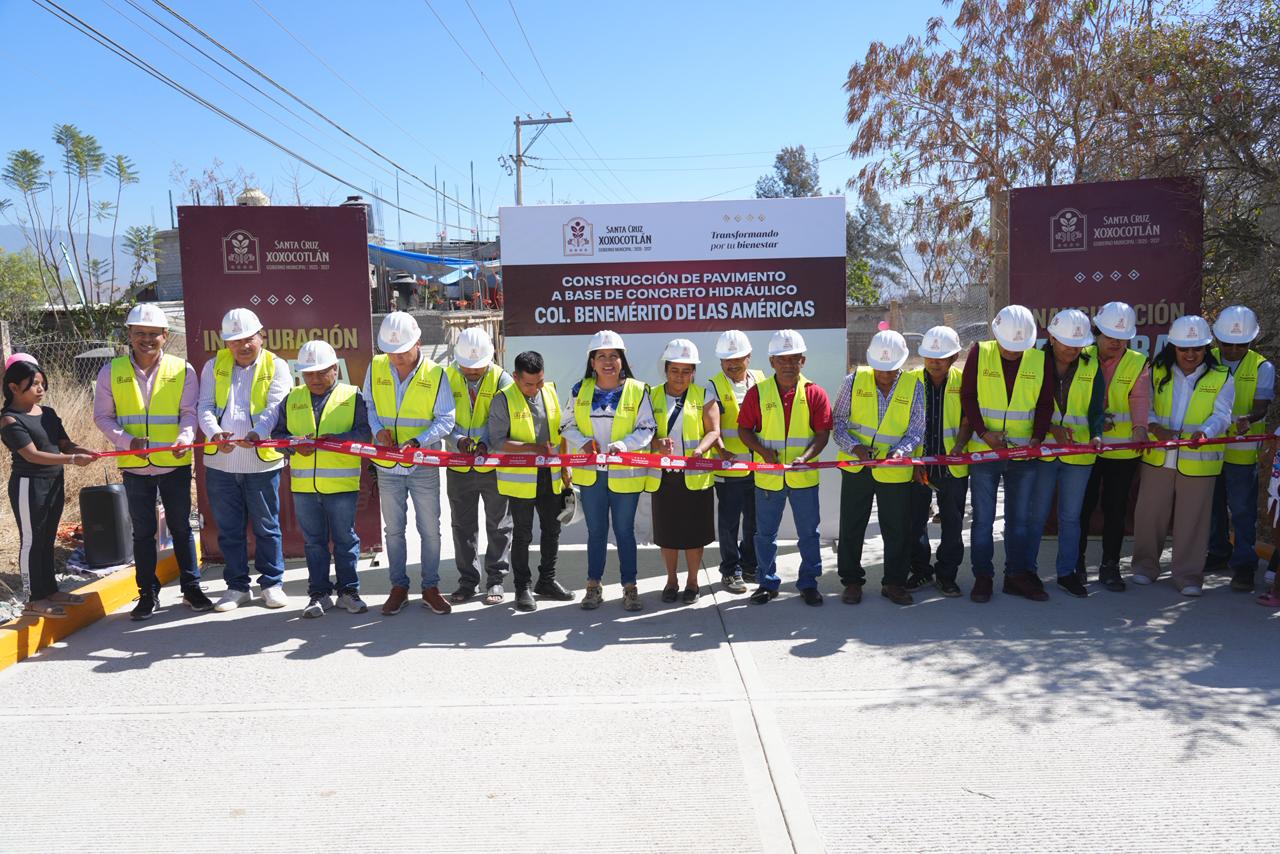 Santa Cruz Xoxocotlán, Oax., 01 de Marz. – El Ayuntamiento de Santa Cruz Xoxocotlán, encabezado por la presidenta municipal Nancy Benítez Zárate, realizó la entrega de diversas obras de infraestructura que mejoran los servicios básicos a 3 mil 88 habitantes xoxeños.