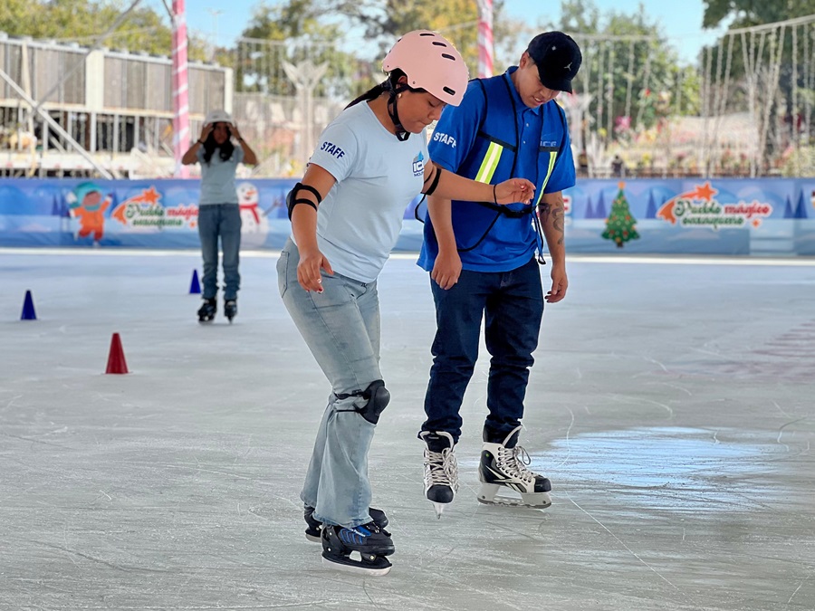 Oaxaca de Juárez, Oax., 9 de diciembre de 2024.- El Sistema para el Desarrollo Integral de la Familia (DIF) Oaxaca informa que la pista de hielo instalada en el Festival Navideño del Parque Primavera Oaxaqueña Cho Ndobá está abierta al público en un horario de 12:00 a 22:00 horas.